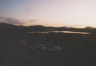 Straße, die um den Berg herumführt, ist auch noch gut zu sehen. Abends kochen