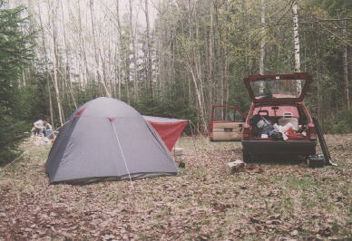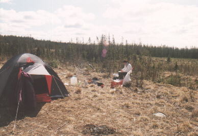 Das Zelt wird schnell aufgebaut, Heike soll schon Holz für ein Feuer sammeln. Das