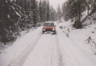 auf einer kleinen Straße. Mit den Sommerreifen habe ich manchmal an Steigungen